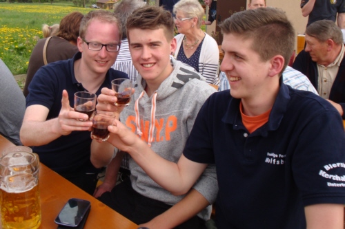| Am 09. Mai 2013 hielt die FFW Geschwand am Feuerwehrhaus ihre traditionelle Grillparty ab. Bei anfänglich noch etwas kühlen Temperaturen jedoch im Tagesverlauf immer schöner werdenden Wetter mit frühsommerlichen Temperaturen war der Frühschoppen bei Weißwürsten mit Brezen und Weißbier schon bestens besucht. Viele benachbarte und befreundete Wehren waren sowohl zum Frühschoppen als auch am Nachmittag zu Gast bei der FFW Geschwand. Leider konnten aufgrund der zeitlichen Nähe zum Signalsteinfest die allseits geschätzten Grillhaxen nicht angeboten werden. Am Nachmittag servierte die Familie Steinhäußer Kaffee und Kuchen für die Besucher (der Erlös kam wie jedes Jahr der Behindertengruppe zu Gute). Danach wurde bis in die frühen Morgenstunden gefeiert. |
