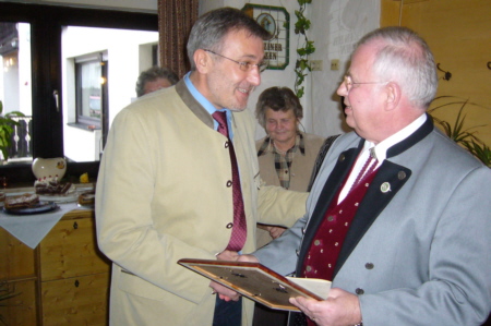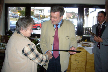 | Am 25. Februar 2007 hielt der Fränkische Schweiz Verein Geschwand seine Jahreshauptversammlung im Vereinslokal Gasthof "Alter Wirt" ab. Mit 57 anwesenden Mitgliedern war die Versammlung auch in diesem Jahr wieder sehr gut besucht. Neben Bürgermeister Willi Müller wohnten auch Kulturausschussvorsitzender Walter Tausendpfund und der 2. Hauptvorsitzende Helmut Krämer der Versammlung bei. Der wichtigste Tagesordnungspunkt war der Beschluss einer eigenen Vereinssatzung. Neben vielen Ehrungen wurde Hans Hutchison zum Ehrenmitglied ernannt. |