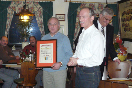 Am 28. Dezember 2007 hielt der Gesangverein Gemütlichkeit Geschwand seine Jahreshauptversammlung für das Jahr 2007 ab. 1 Vorsitzender Willi Müller begrüßte 29 Mitglieder. Dirigent Ludwig Ebenhack verwies auf 44 Singstunden und 31 Auftritte im abgelaufenem Jahr 2007. Der 1. Vorsitzende Willi Müller ehrte für 10 Jahre Singen im Chor Hans Brütting, für 25 Jahre Singen im Chor Manfred Koch, für 25 Jahre Mitgliedschaft im Gesangverein Andreas Eckert. Eine besondere Ehre wurde dem Chorleiter des Gesangvereins zu teil.   Für 25 Jahre ehrenamtliche Leitung des Chores wurde Ludwig Ebenhack zum Ehrenchorleiter des Gesangvereins Gemütlichkeit Geschwand ernannt. Ein weiterer Höhepunkt der Versammlung war die Ernennung des 1. Vorsitzenden Willi Müller zum Ehrenvorstandschaftsmitglied nach 25-jähriger Tätigkeit als 1. Vorsitzender. Für 25 Jahre als 2. Vorsitzender wurde Rudolf Arnold ebenfalls ausgezeichnet und zum Ehrenvorstandschaftsmitglied ernannt. Ehrenvorsitzender Georg Arzt übergab sein Amt als Chronist des Gesangvereins an Bernhard Mager.