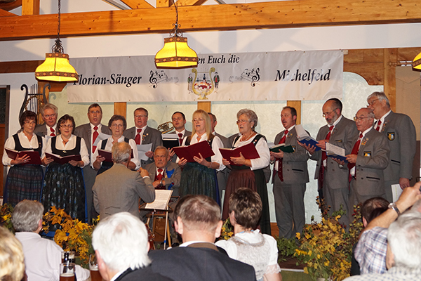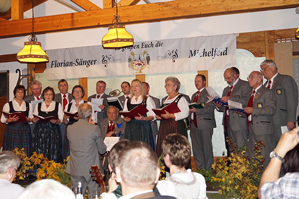 die Singruppe des FSV-Geschwand beim Volksmusikabend in Michelfeld auf. Weitere Teilnehmer waren die Florian-Sänger, die Egloffsteiner-Burgspatzen, die Friedrich-Moila und Hans Bauer und seine Musikanten.