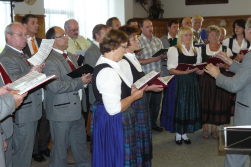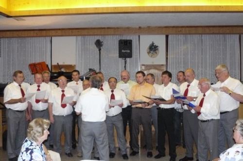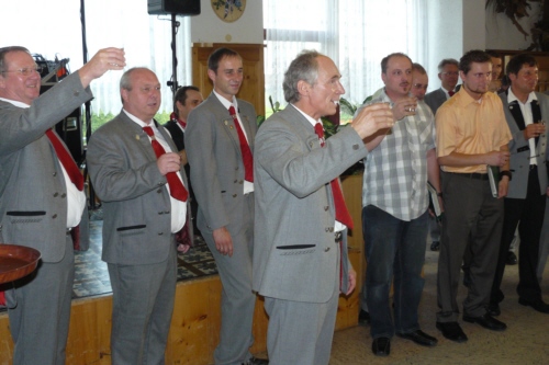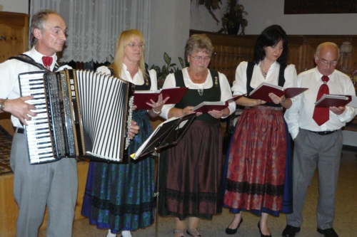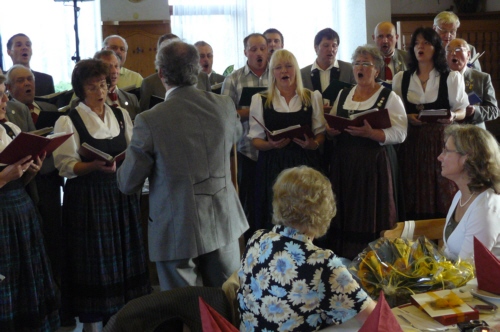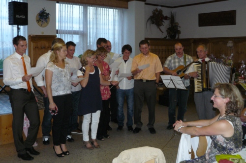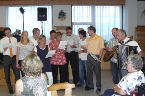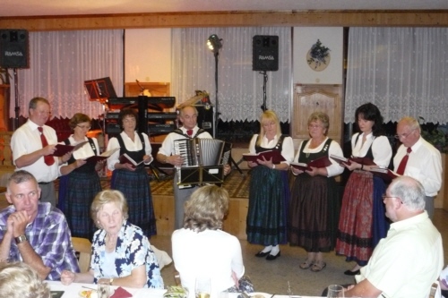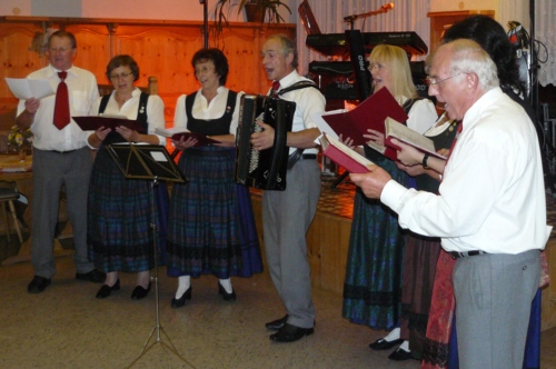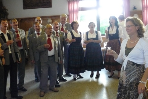 eigens zum 50. Geburtstag von Irmgard Eichler umgetextete Version des Volksliedes "Ein Schäfermädchen weidete" als Ständchen von der Singgruppe des FSV